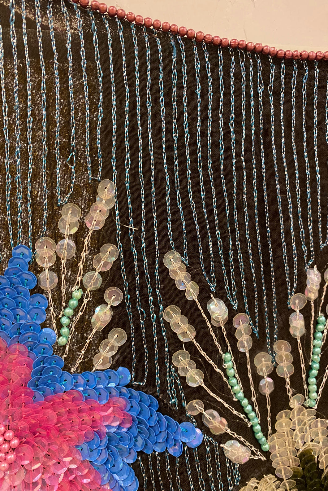 Vintage floral sequin blouse with pointed hem. No tags. Best suits XXS - XS.