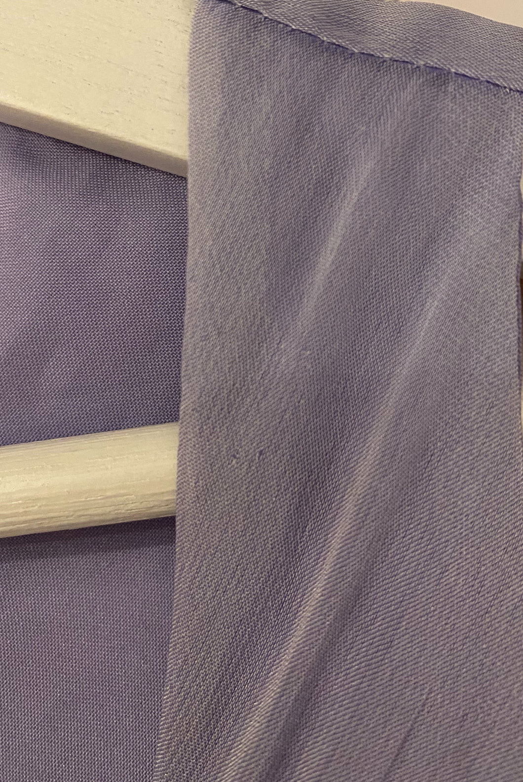 Vintage maxi lavender mesh sleeveless evening dress with cascading ruffle hem by En Francais Montreal. Made in Canada. Labeled as a size 12.