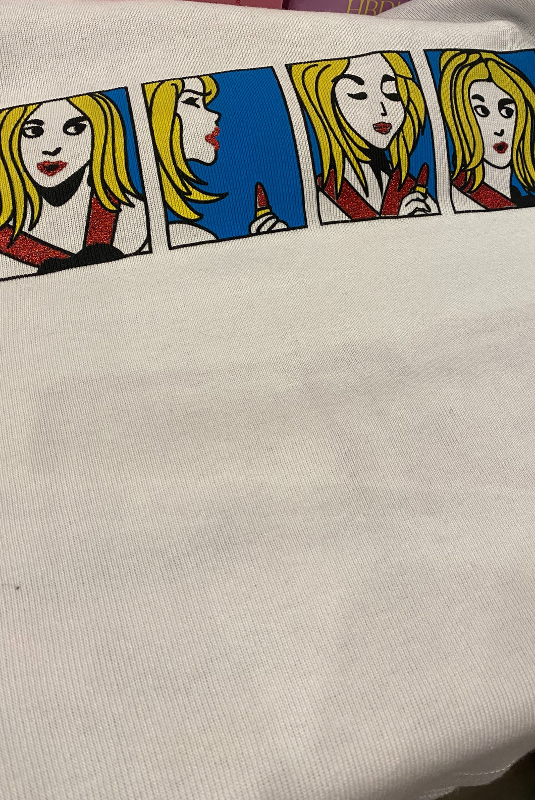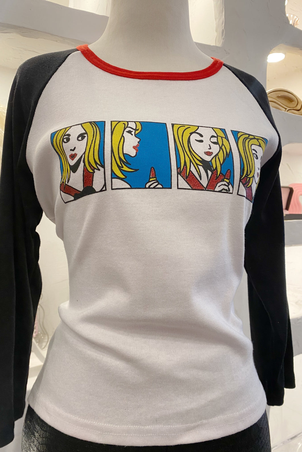 Y2K baseball long sleeve shirt with comic-like graphics by Request. Made in Canada. Size large.