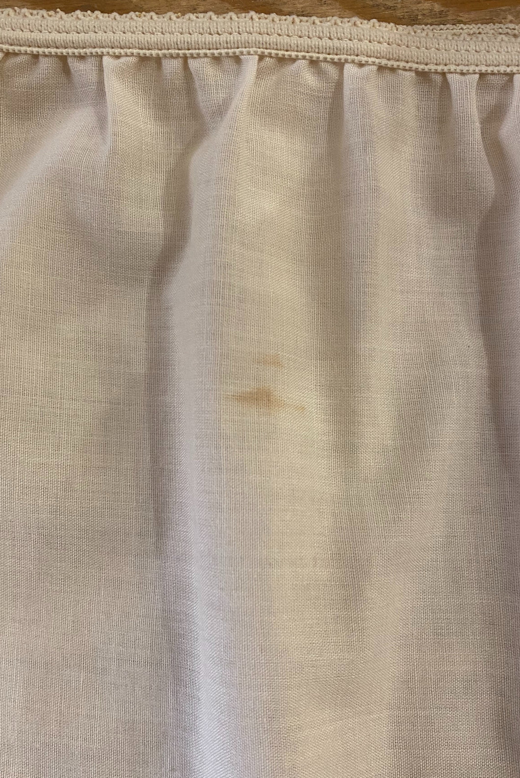 Vintage off-white/cream slip skirt by St. Michael with elastic waistband and lace trim. Cotton/polyester blend.