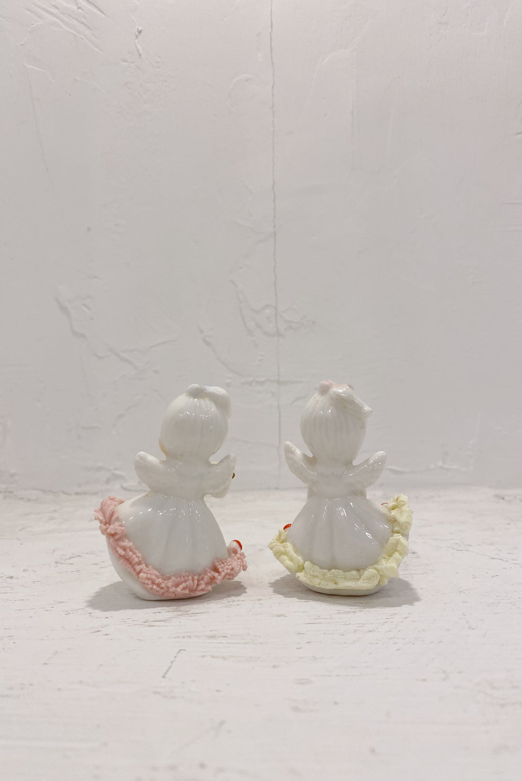 Vintage pair of Napco style mini porcelain angels with gold gilding and hand painted faces.
