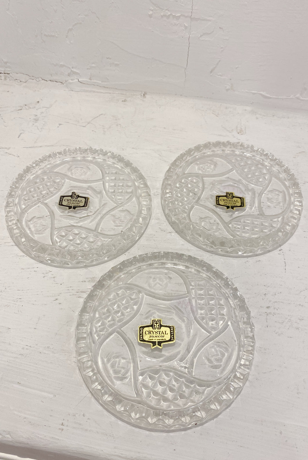 Set of 3 vintage Zajecar cut glass crystal coasters made in Yugoslavia. Contain 24% lead. Generally considered to be safe for use however, use discretion.