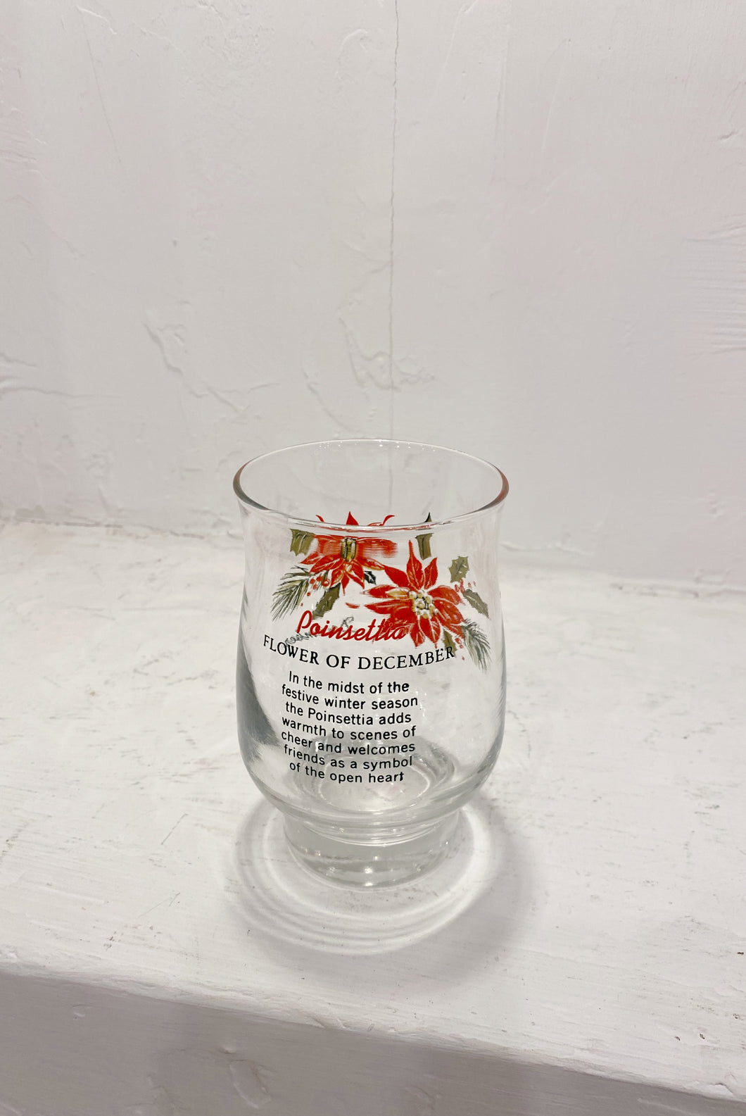 70s Vintage December poinsettia footed drinking glass.