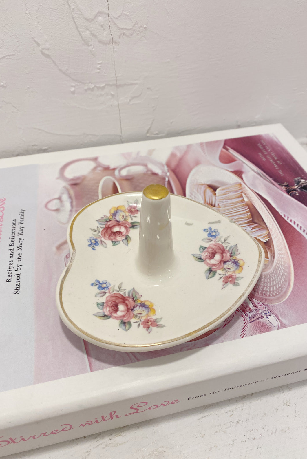 Vintage ceramic heart shaped ring dish by Lord Nelson, England. Base is marked 10-77 & 3641.
