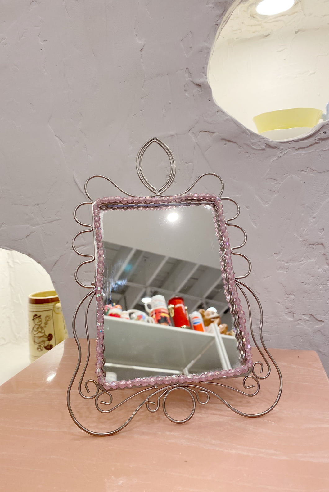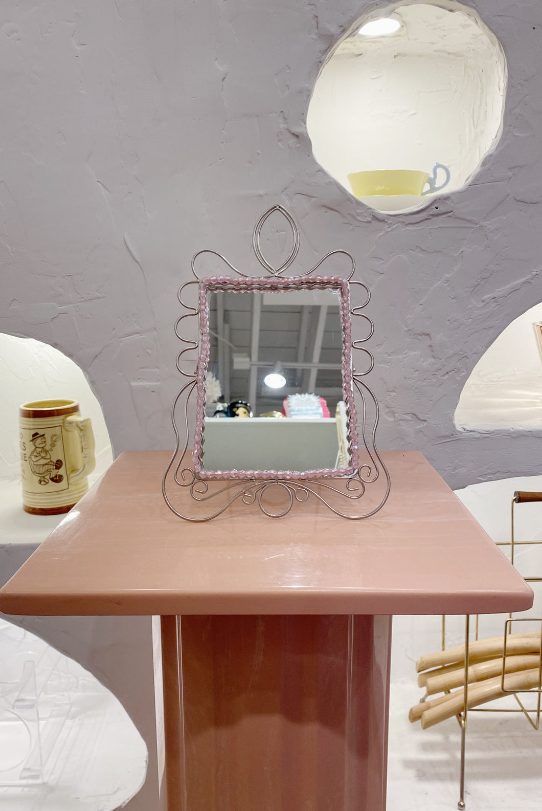 IKEA ‘Vanna’ wire and beaded table top mirror. Made in China. Copyright 1999.