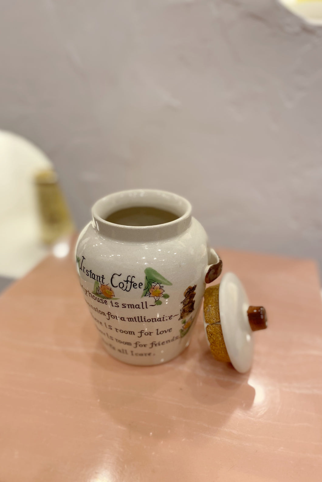 Vintage instant coffee jar made in Japan. Has lots of crazing, especially on interior.