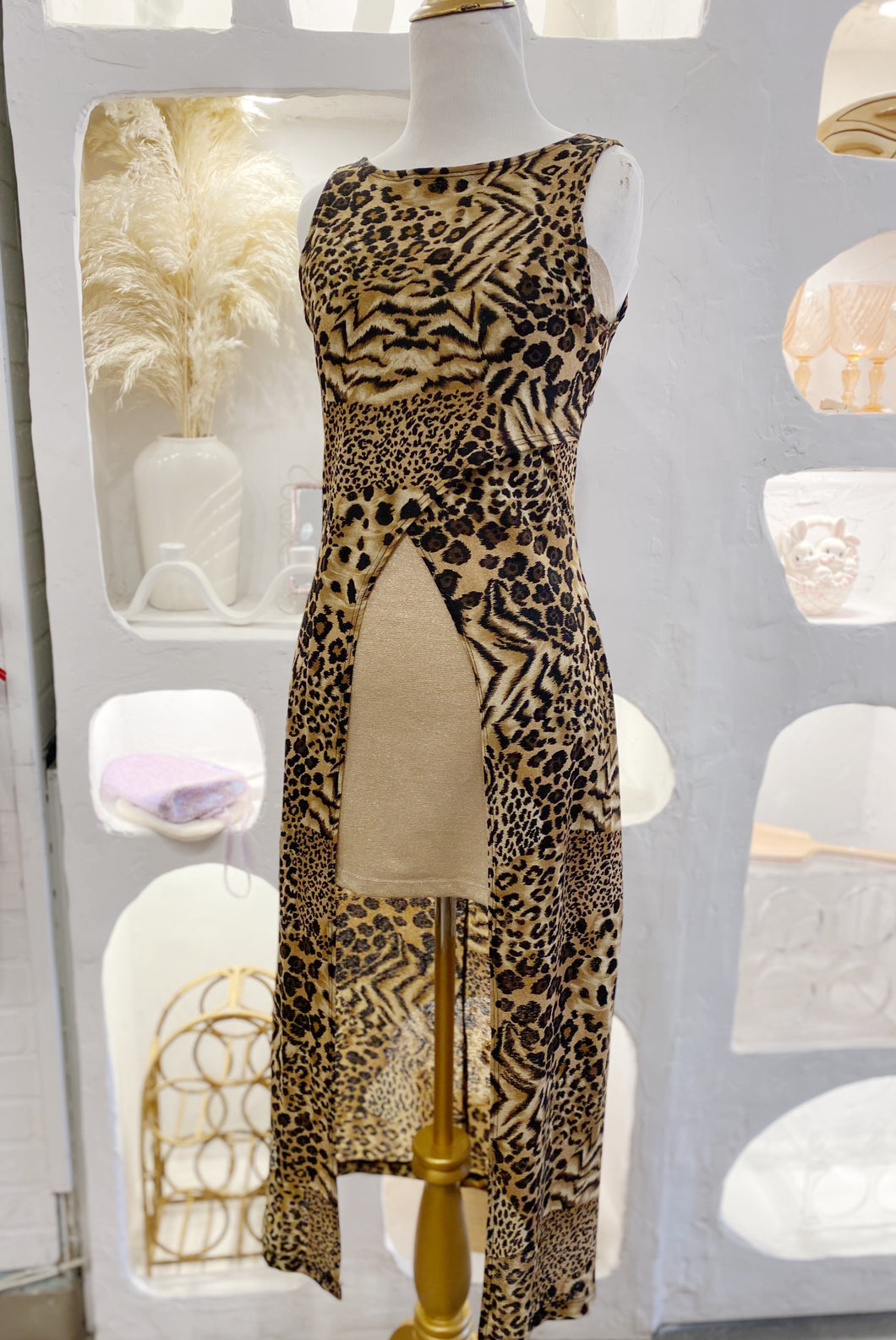 Vintage stretchy leopard print layering piece with open front by Be Smart. Made in USA. Labeled as a size 9/10. Suits size S-L.