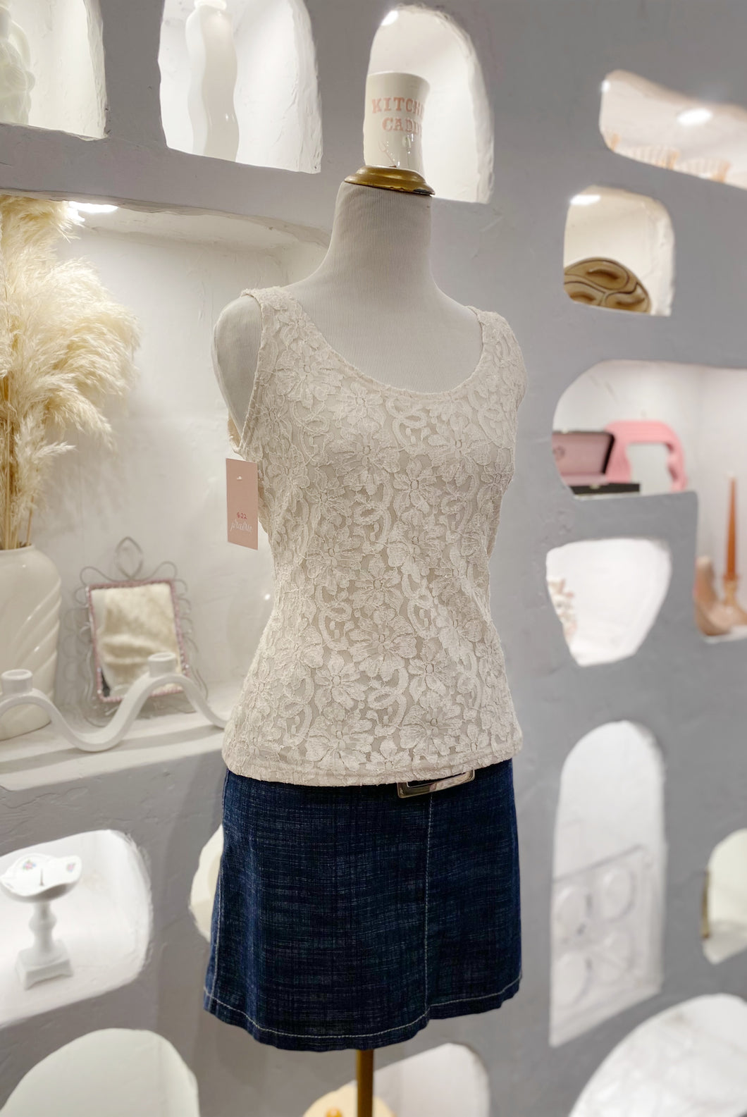 Vintage white lace tank top by Charleston Rags. Made in USA. Size small.