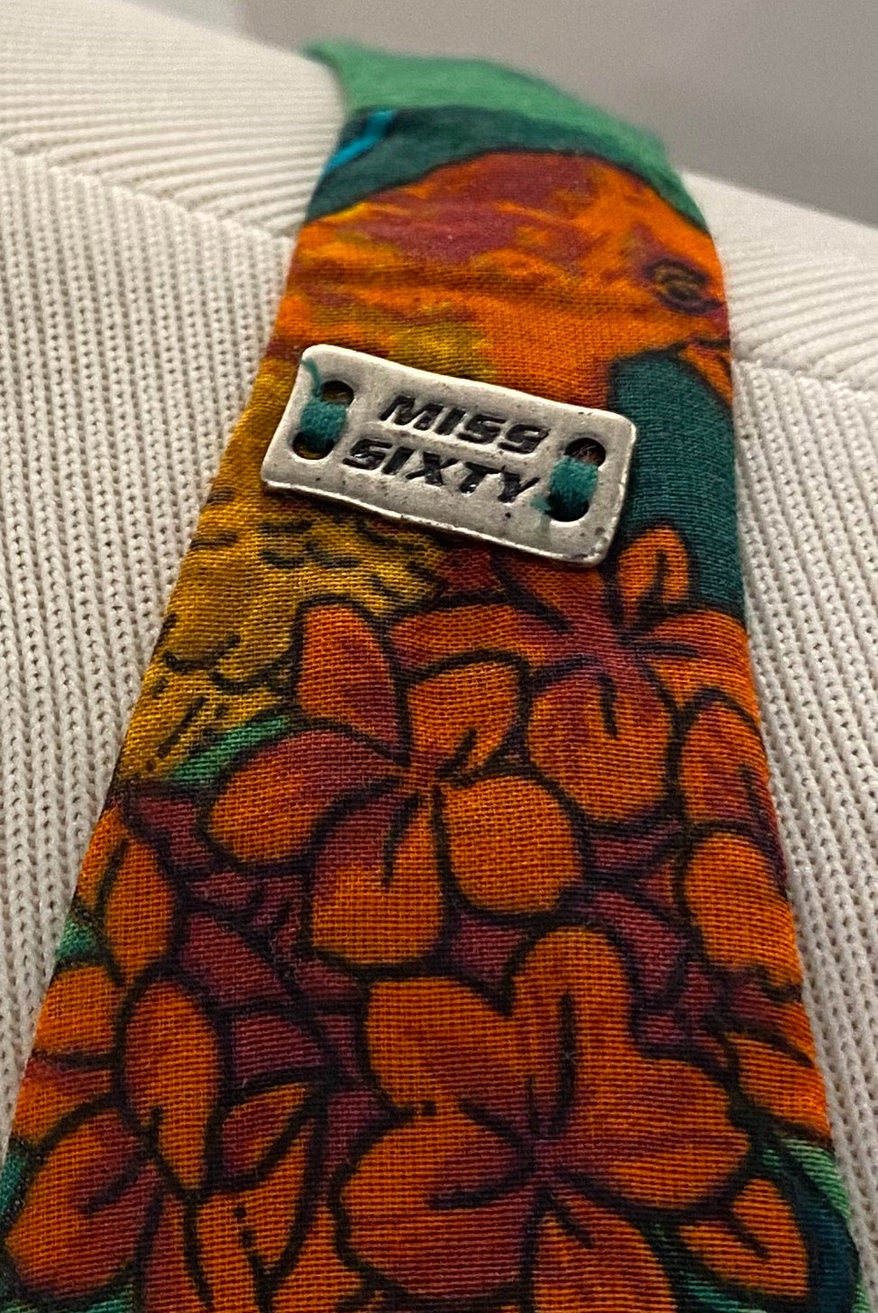Miss Sixty green tropical parrot dress with matching belt at hips. Made in Italy. Size medium.